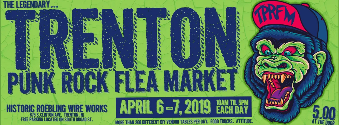 Trenton Punk Rock Flea Market Sunday, April 7, 2019 10:00 AM 5:00 PM 10:00 17:00 Roebling Wire Works 675 South Clinton Avenue Trenton, NJ, 08611 United States (map) Google Calendar ICS Look for me on Sunday only!!